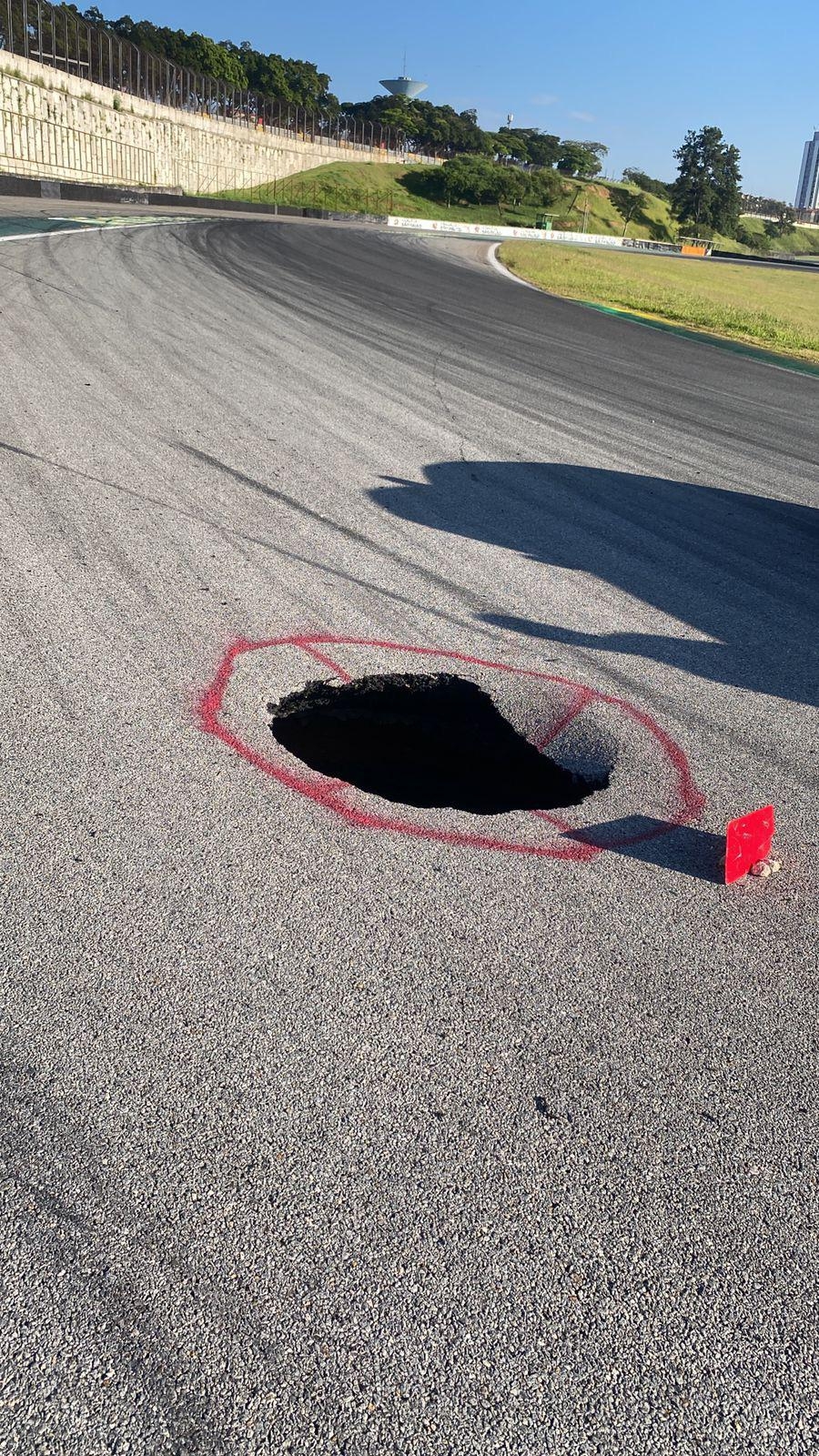 A sink hole has appeared at Interlagos.