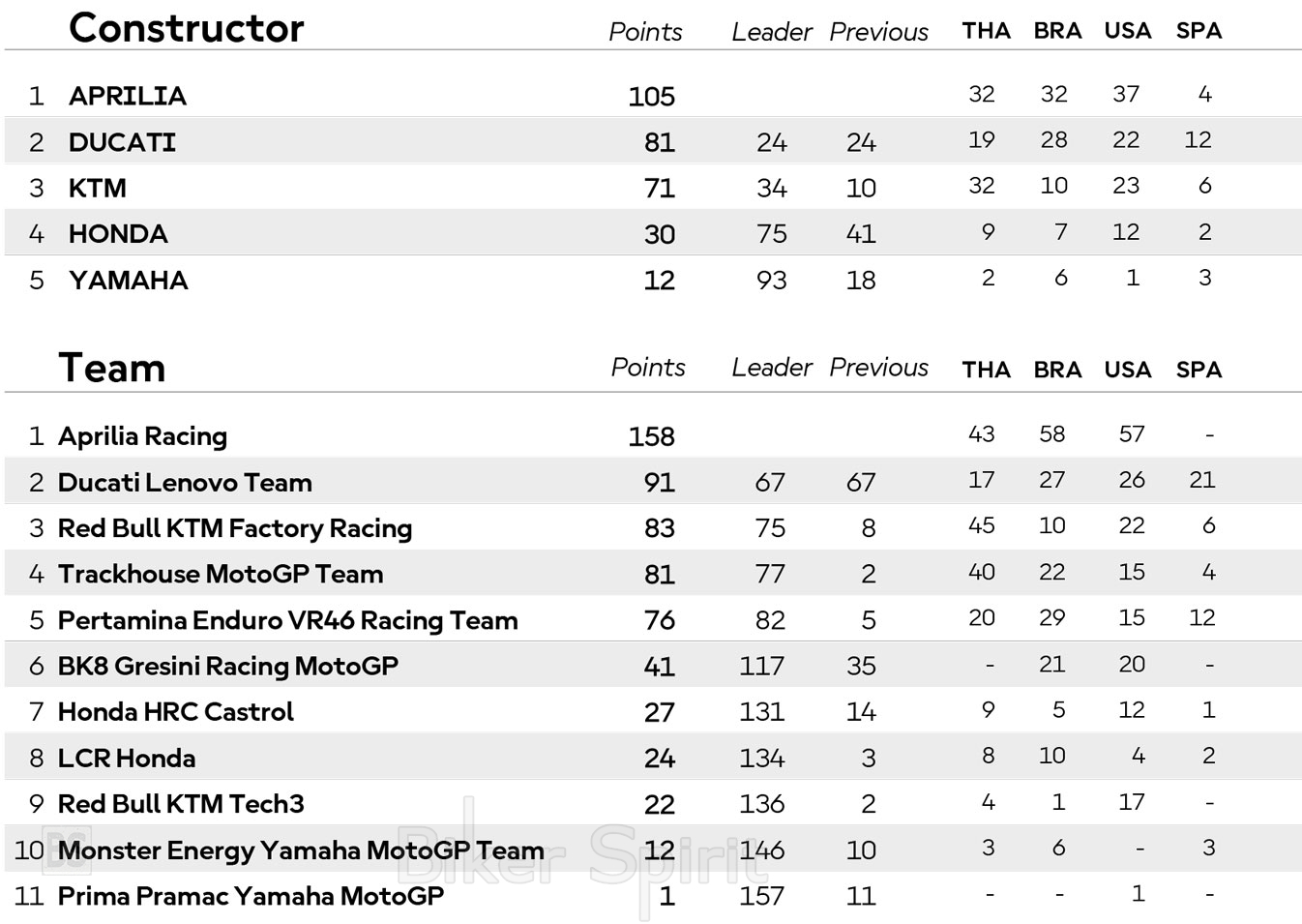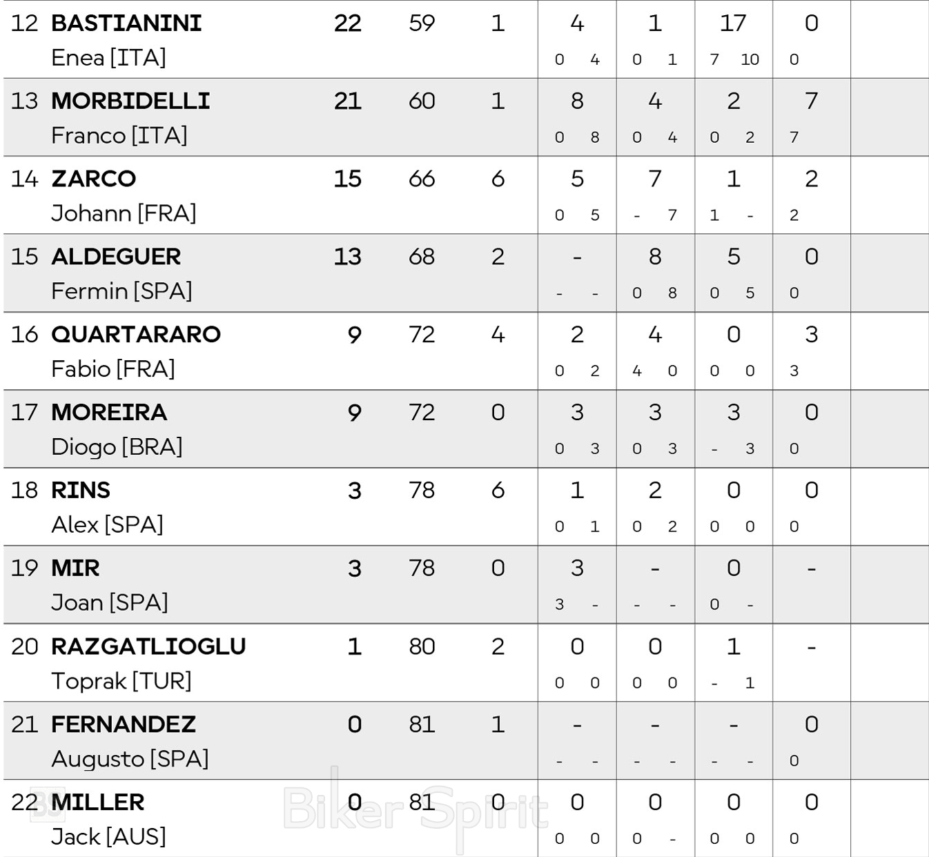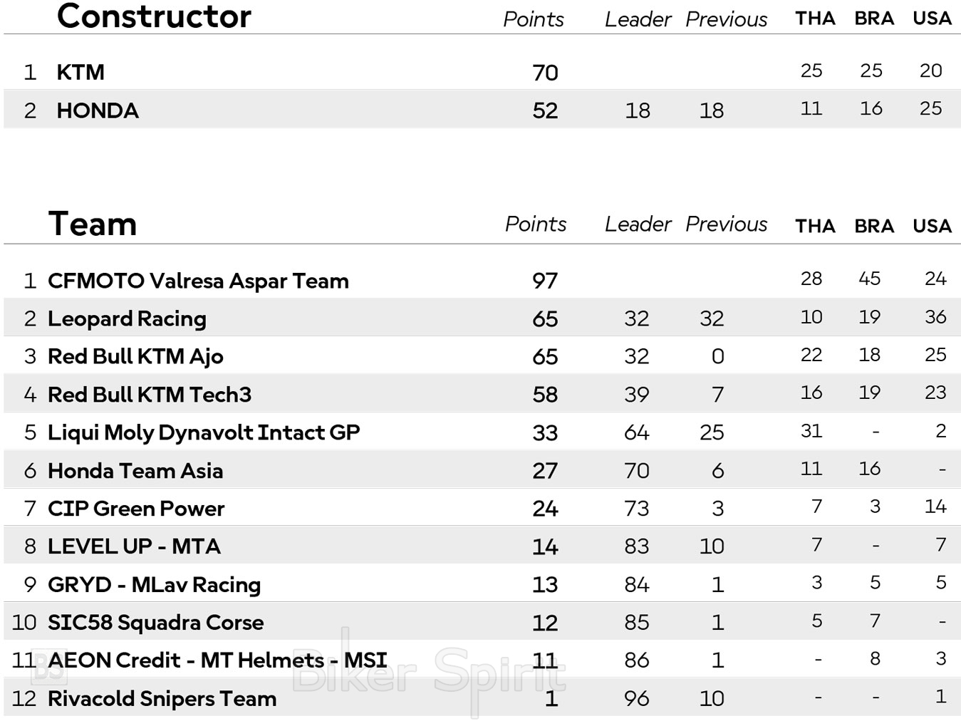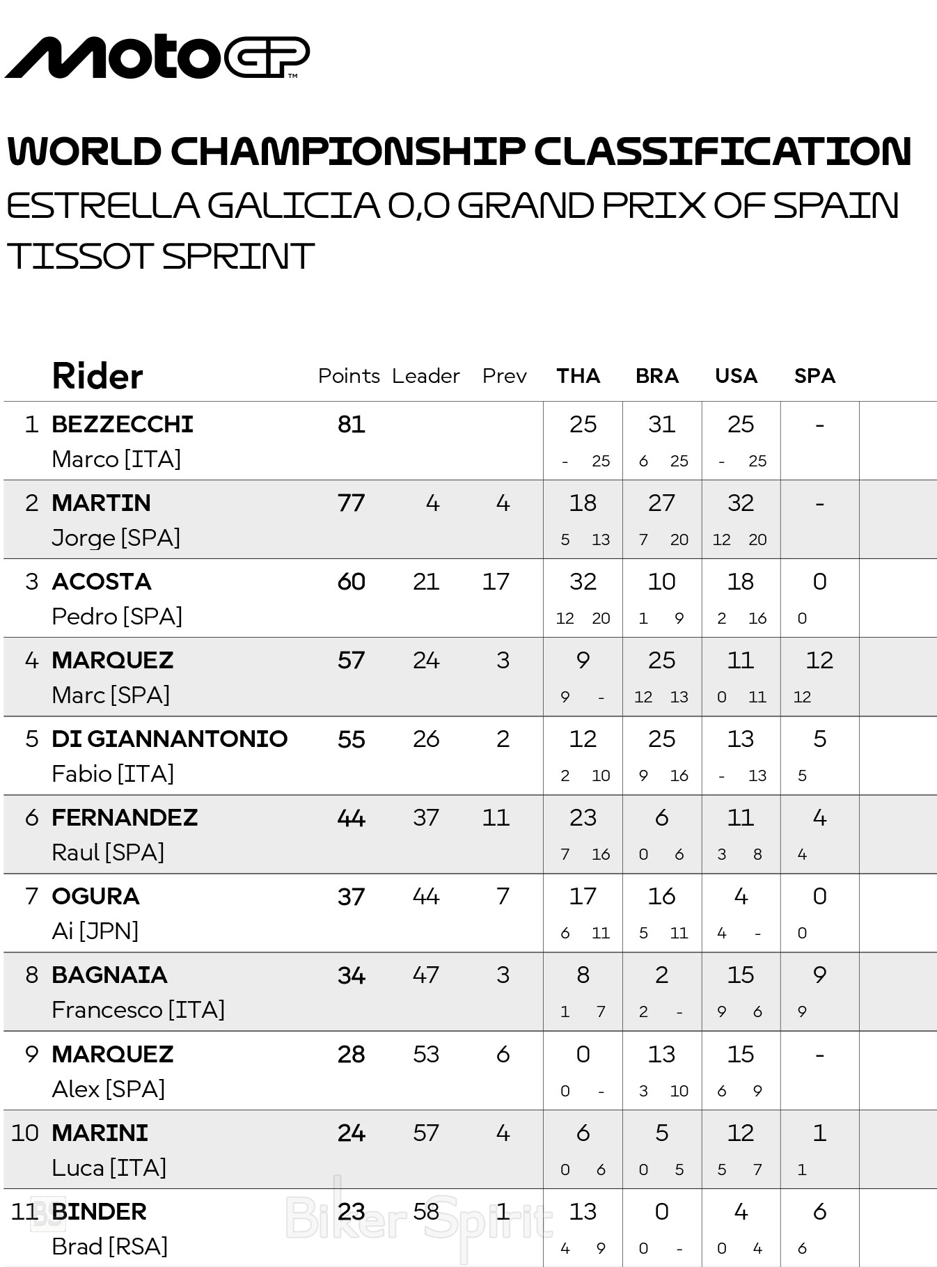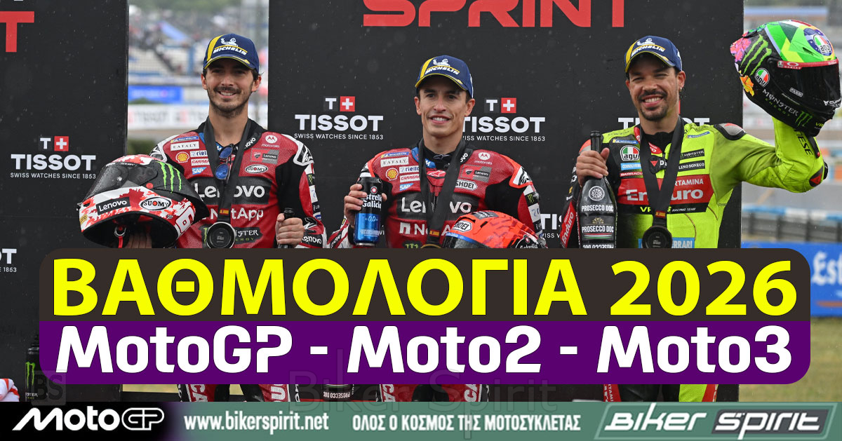MotoGP 2026 ΒΑΘΜΟΛΟΓΙΑ MotoGP 2026 – Βαθμολογία των Οδηγών – Κατασκευαστών και ομάδων στα MotoGP – Moto2 – Moto3 για το 2026 28 February 2026 BikerSpirit #BrazilianGP, #USGP, MotoGP, MotoGP2026, ThaiGP 1 min read ΒΑΘΜΟΛΟΓΙΑ MotoGP 2026 – Βαθμολογία των Οδηγών – Κατασκευαστών και ομάδων στα MotoGP – Moto2 – Moto3 για το 2026 MotoGP - 2026Moto2 - 2026Moto3 - 2026 MotoGP - 2026 Moto2 - 2026 Moto3 - 2026 MotoGP 2026 Δείτε επίσης: ΗΜΕΡΟΛΟΓΙΟ MotoGP 2026 -–- ΒΑΘΜΟΛΟΓΙΑ 2026 Πρόγραμμα και ώρες του 4ου αγώνα MotoGP 2026 στην Jerez – Ώρες των δοκιμαστικών, του αγώνα SPRINT και των Αγώνων στις 24-25-26/04/2026 Randomizer Related Posts Ο Marc Marquez νικητής στο Sprint της Jerez μετά από πτώση – Στο επίκεντρο συζήτησης η είσοδος στα pits Ο Marc Marquez κέρδισε έναν επεισοδιακό αγώνα Sprint στη Jerez – Pecco Bagnaia και Franco Morbidelli στο βάθρο – Αποτελέσματα Ο Marc Marquez πήρε την Pole Position στη Jerez – Johan Zarco και Di Giannantonio στην πρώτη σειρά εκκίνησης – Αποτελέσματα Ποινή τριών θέσεων για τον Jorge Martin μετά το συμβάν με τον Alex Marquez Ο Alex Marquez ταχύτερος στο Practice στη Jerez – Ποιοι οδηγοί περνούν στο Q2 – Αποτελέσματα Σοκ για τον Rins – Έμαθε από τα media το «τέλος» με τη Yamaha Share this: Share on Facebook (Opens in new window) Facebook Share on X (Opens in new window) X Share on LinkedIn (Opens in new window) LinkedIn Print (Opens in new window) Print More Share on Reddit (Opens in new window) Reddit Share on Tumblr (Opens in new window) Tumblr Share on Pinterest (Opens in new window) Pinterest Related
