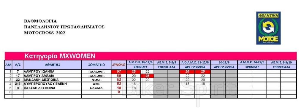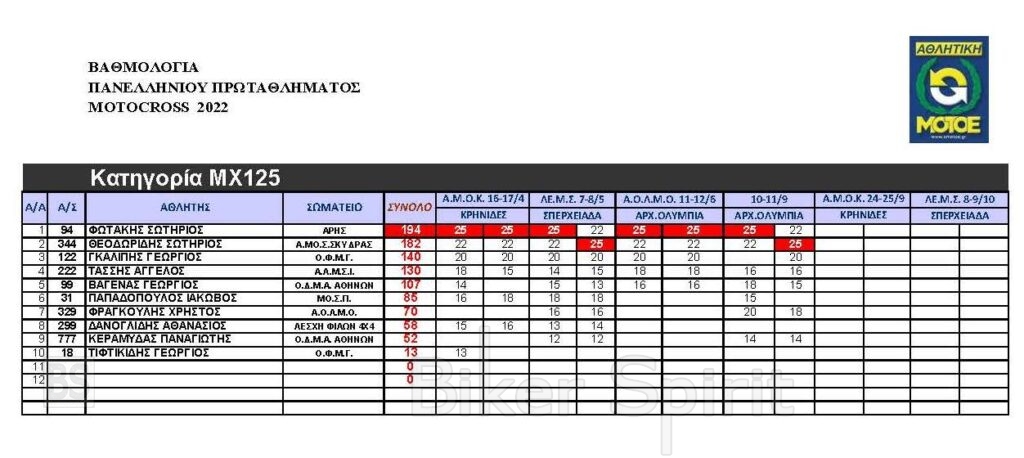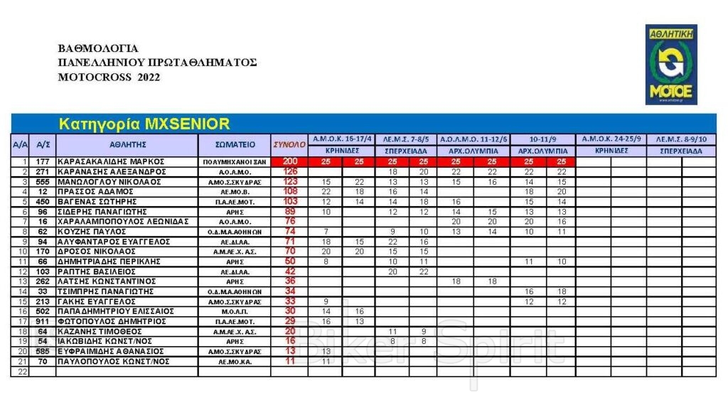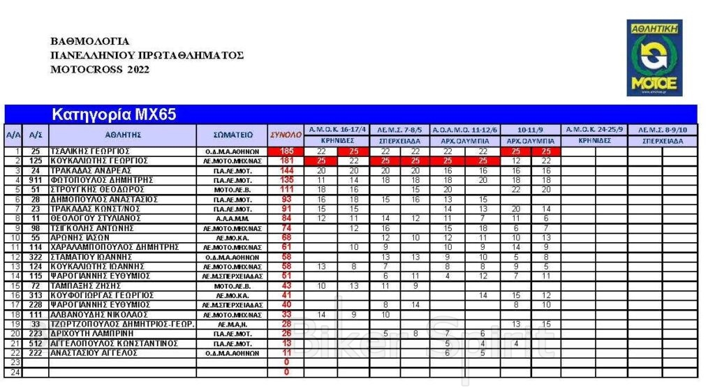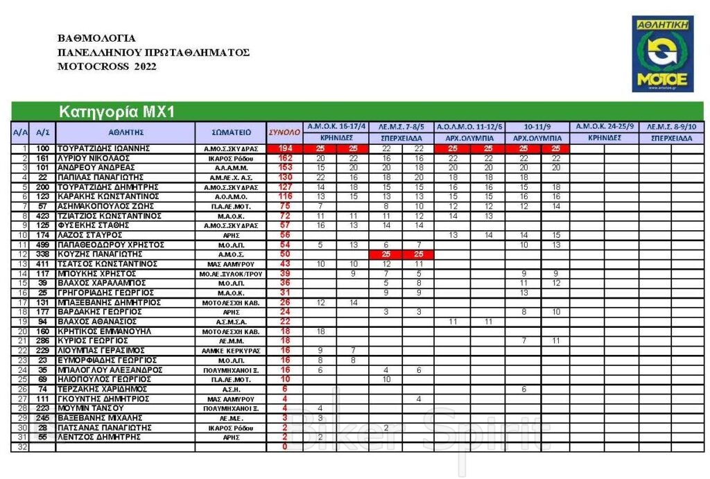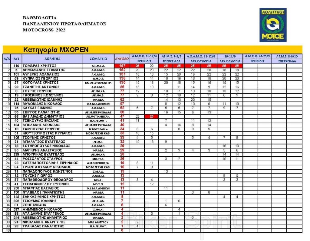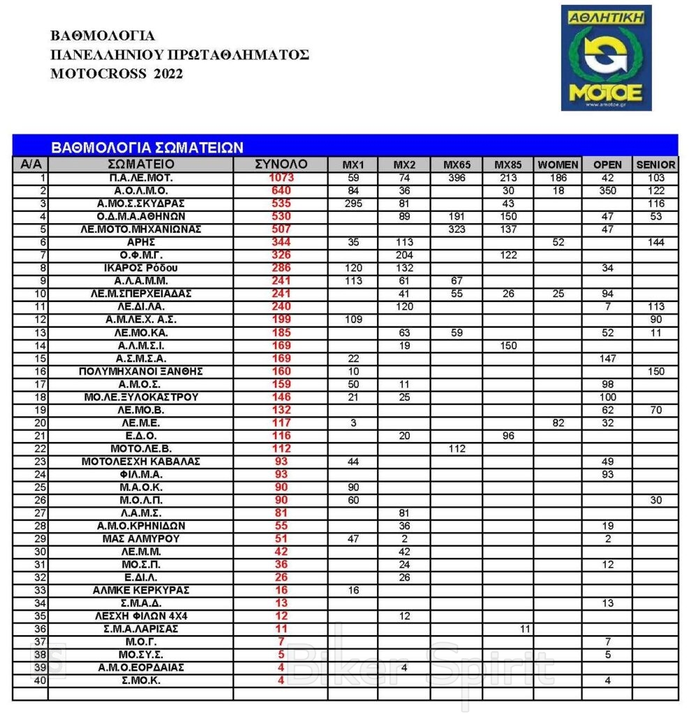 Motocross 2022 Βαθμολογία Πανελληνίου Πρωταθλήματος Motocross 2022 20 September 2022 BikerSpirit Motocross, Motocross 2022, Βαθμολογία 0 min read Η Βαθμολογία του Πανελληνίου Πρωταθλήματος Motocross 2022. Randomizer Related Posts Βαθμολογία Κυπέλλου Motocross Βορείου Ελλάδος 2022 ΑΠΟΤΕΛΕΣΜΑΤΑ του 3ου αγώνα Κυπέλλου Βορείου Ελλάδος Motocross 2022 – Προσοτσάνη – 20/11/2022 ΑΠΟΤΕΛΕΣΜΑΤΑ του 2ου αγώνα Κυπέλλου Βορείου Ελλάδος Motocross 2022 – Κέρκυρα 13/11/2022 Η αυλαία του Πανελληνίου Πρωταθλήματος Motocross έπεσε & πάλι είχε χρώμα Μπλε – 4 Πρωταθλήματα, βάθρα και μετάλλια ΣΥΜΜΕΤΟΧΕΣ του 6ου αγώνα Πανελληνίου Πρωταθλήματος Motocross 2022 – Σπερχειάδα – 8 και 9 Οκτωβρίου 6ος αγώνας Πανελληνίου Πρωταθλήματος MOTOCROSS 2022 – Σπερχειάδα – 8 και 9 Οκτωβρίου – ΕΙΔΙΚΟΣ ΚΑΝΟΝΙΣΜΟΣ Share this: Share on Facebook (Opens in new window) Facebook Share on X (Opens in new window) X Share on LinkedIn (Opens in new window) LinkedIn Print (Opens in new window) Print More Share on Reddit (Opens in new window) Reddit Share on Tumblr (Opens in new window) Tumblr Share on Pinterest (Opens in new window) Pinterest Related