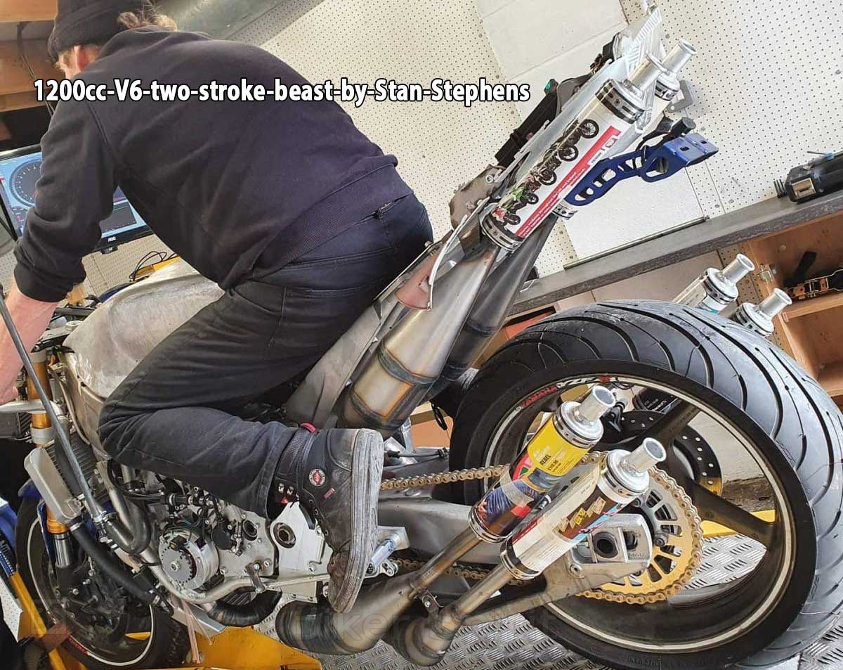 Εκτός από την τακτική του δουλειά ως μηχανικός αλλα και “ανακατασκευαστής” δίχρονων κινητήρων, ο Stephens έχει περάσει χρόνια δουλεύοντας σε ένα προσωπικό έργο στο οποίο αφιερώνει τον λίγο ελεύθερο χρόνο που έχει. Μια δουλειά που ξεπερνά τα 10 χρόνια σχεδόν και είναι μια σπορ μοτοσυκλέτα που έχει έναν εντυπωσιακό και ενδιαφέρον 6κύλινδρο δίχρονο κινητήρα με κυβισμό 1.200 cc. σε διάταξη V.