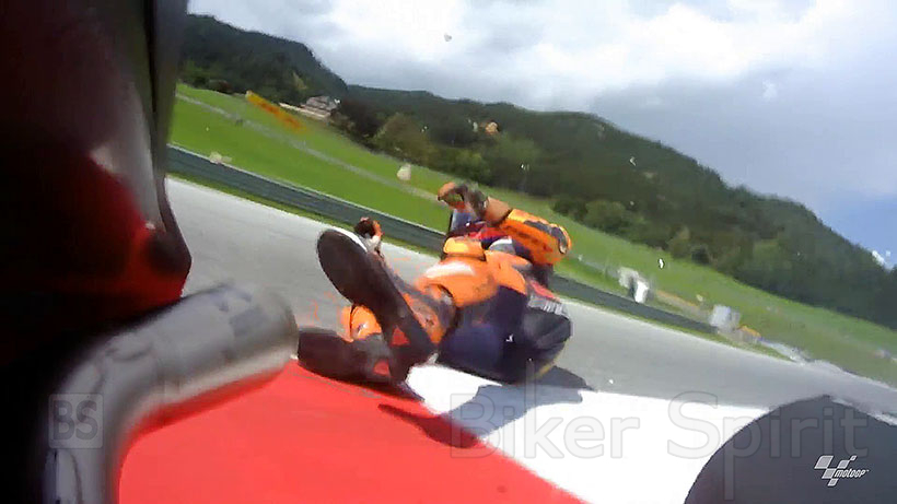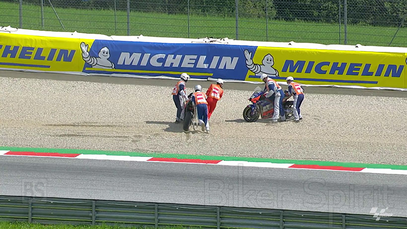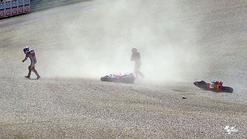 Και οι δύο αναβάτες της KTM αγωνίζονταν για μια θέση όταν, μετά από μια προσπέραση του Πορτογάλου στον Ισπανό, και οι δύο κατέληξαν να πέσουν.