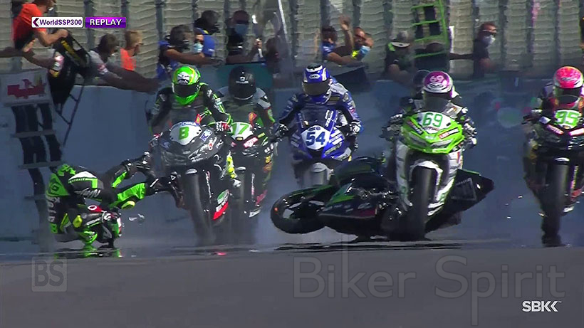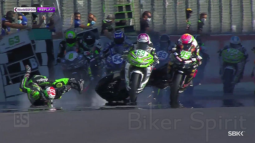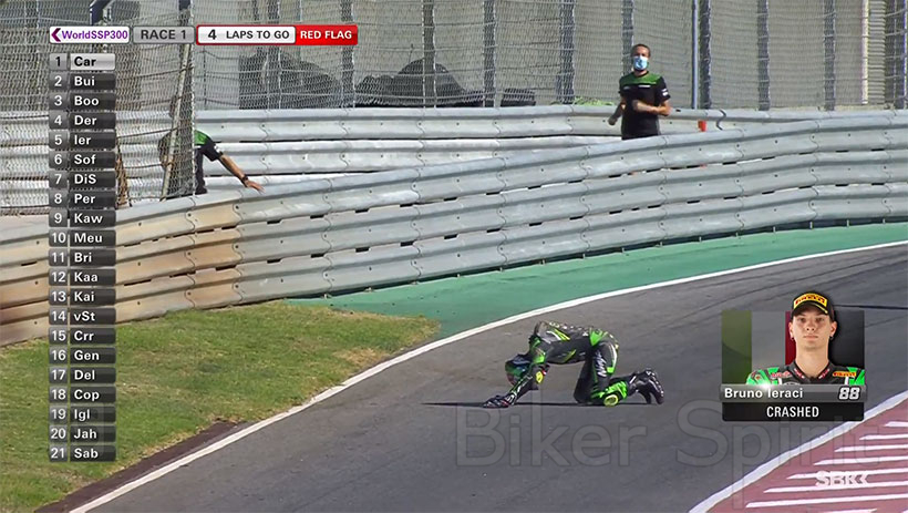 Η πτώση που προκάλεσε την κόκκινη σημαία και την διακοπή του αγώνα ήταν του Bruno Ieraci, που στάθηκε τυχερός στην ατυχία του αφού δεν προκλήθηκε μια ομαδική πτώση καθώς ήταν σε μια ομάδα με πάνω από 5-6 οδηγούς και που ευτυχώς δεν τον χτύπησε άλλη μηχανή!