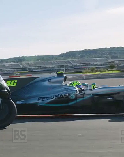 Ο Lewis Hamilton και ο Valentino Rossi ανταλλάσσουν ρόλους στην πίστα της Βαλένθια. Ο Rossi οδηγεί μια Formula 1 και ο Hamilton μια μοτοσυκλέτα MotoGP.