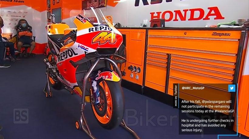 Ο Pol Espargarò, είχε ένα τρομερό high-side κατά τη διάρκεια του FP3 της κατηγορίας MotoGP στη Βαλένθια, υπέστη ένα δυνατό χτύπημα στο δεξί στήθος και ένα χτύπημα στον δεξιό καρπό.