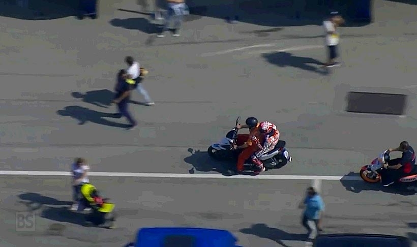 «Επέστρεψα πολύ γρήγορα στο γκαράζ. Ακόμη και ο άνθρωπος με το σκούτερ πίεσε πολύ, ήταν τρομακτικό μερικές φορές γιατί νόμιζα πως θα πέσουμε, αλλά έκανε πολύ καλή δουλειά!» είπε χαμογελώντας ο Marquez.