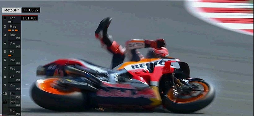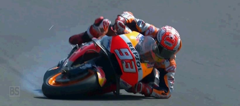Ο Marc Marquez στην προσπάθεια του στο Q2 είχε μια πτώση με αποτέλεσμα το RC213V να μην μπορεί να συνεχίσει και ο ίδιος έκανε μια κούρσα για να προλάβει να ξαναμπεί στην πίστα.