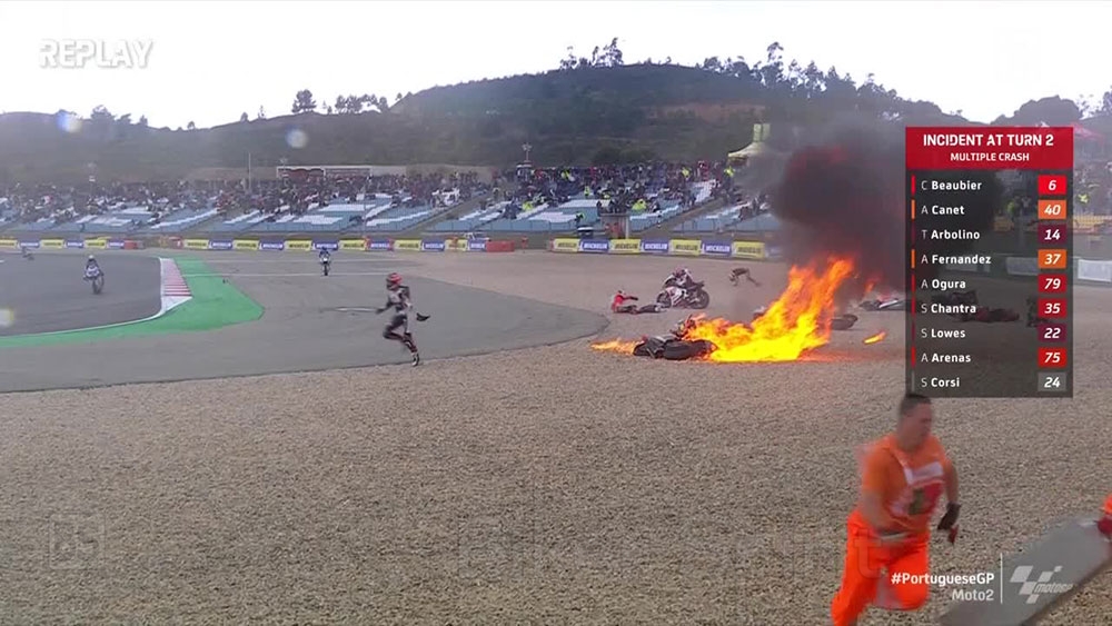 VIDEO: Η τρομακτική πτώση των 12 οδηγών που προκάλεσε το χάος στον αγώνα της Moto2 στο Portimao