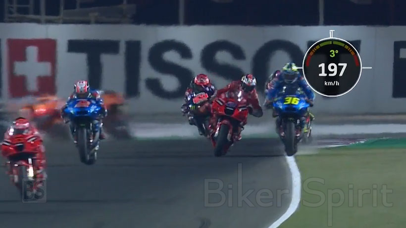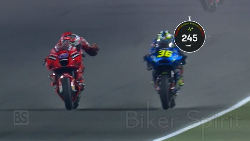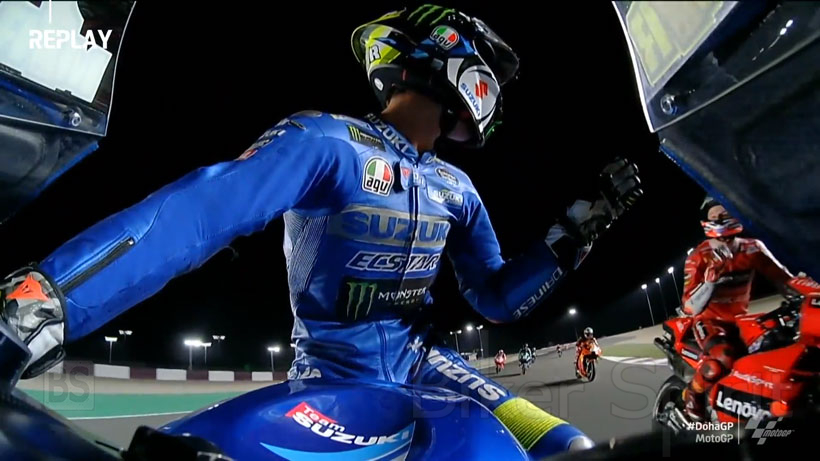 Βγαίνοντας από την στροφή 16, (την στροφή πριν την μεγάλη ευθεία εκκίνησης τερματισμού), ο Αυστραλός με τη Ducati και ο Ισπανός με τη Suzuki έρχονται σε επαφή , αγγίζοντας ο ένας τον άλλον βίαια με τον ώμο.