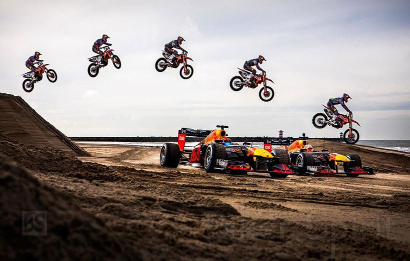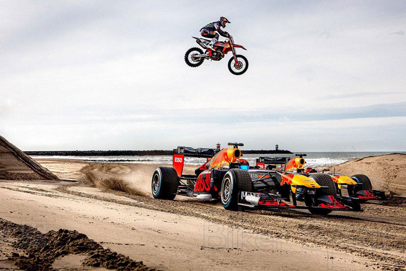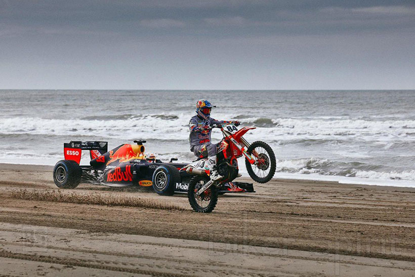 Οι δυο οδηγοί της Red Bull Formula 1, Max Verstappen και Alex Albon, οδηγούν σε διάφορα μέρη της Ολλανδίας, ενώ ο τρεις φορές παγκόσμιος πρωταθλητής Motocross (δύο φορές MX2 και μία φορά MXGP), Jeffrey Herlings τους συναντά με την KTM του … και μάλιστα πηδά πάνω από τα μονοθέσια, σε ένα εντυπωσιακό σκηνικό στην άμμο μιας παραλίας.