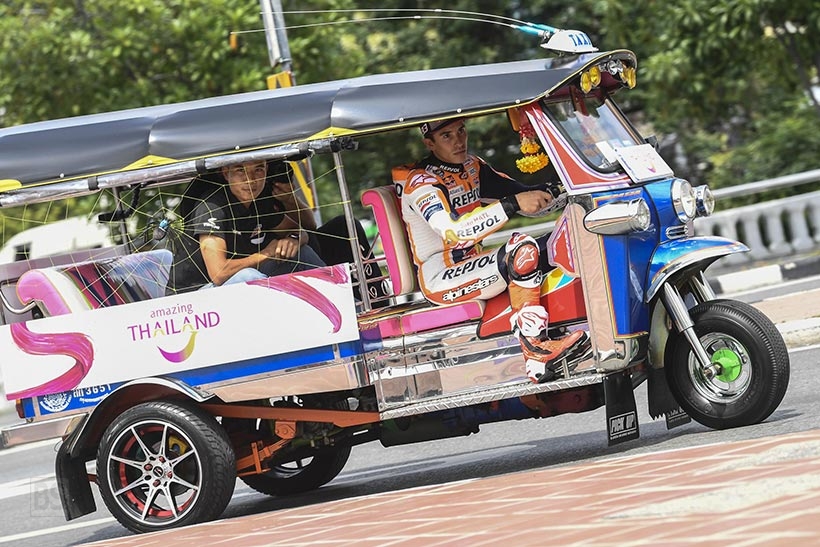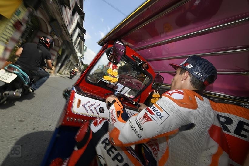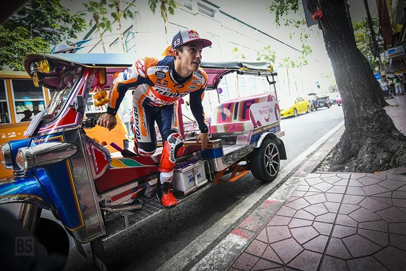 Δείτε το χιουμοριστικό Video και τις φωτογραφίες, με τον Marc Márquez να βολτάρει με την MotoGP μοτοσυκλέτα του στους δρόμους της Μπανγκόκ, αλλά και με ένα παραδοσιακό μοτοταξί της πόλης!