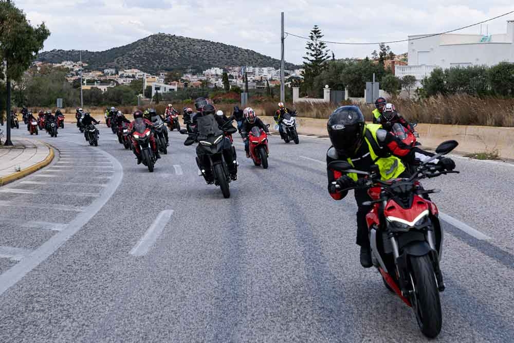 Στην Αθήνα, με αφετηρία το Ducati Athens, κομβόι με 70 μοτοσυκλέτες και περισσότερους από 100 ενθουσιώδεις φίλους της μάρκας και τη συμμετοχή του επίσημου Ducati Official Club Hellas, πέρασε από τις Στήλες Ολυμπίου Διός και το Ζάππειο για να κατευθυνθεί στην παραλιακή, διασχίζοντας την Αθηναϊκή Ριβιέρα, με τελικό προορισμό την Ολυμπιακή Μαρίνα, στο Λαύριο. Με αφετηρία τον Fan Motorcycles, άλλο ένα group 20 μοτοσυκλετών κατευθύνθηκε προς την Βορειανατολική Αττική, επιλέγοντας πιο ορεινές διαδρομές καταλήγοντας στα παράλια στο Πόρτο Ράφτη.