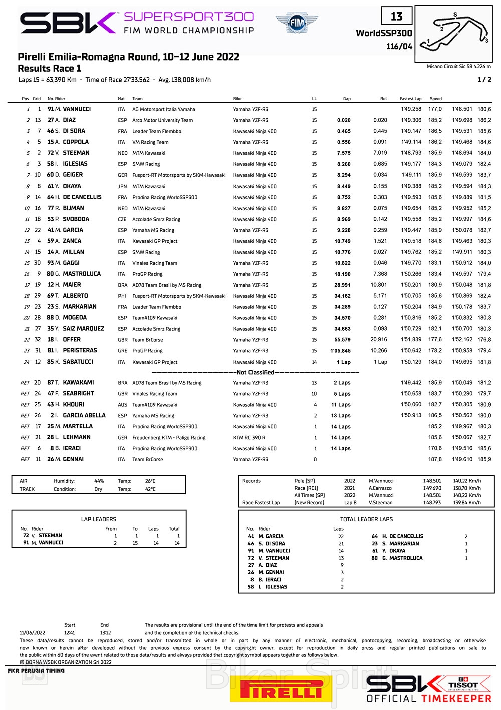 WorldSSP300: Ο Matteo Vannucci παίρνει την παρθενική του νίκη στο Misano – Αποτελέσματα
