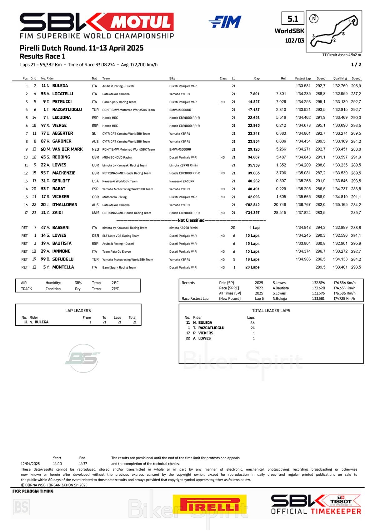Ο Nicolò Bulega κέρδισε τον 1ο Αγώνα του Ολλανδικού γύρου στην πίστα του Assen για τον 3ο γύρο της σεζόν 2025!