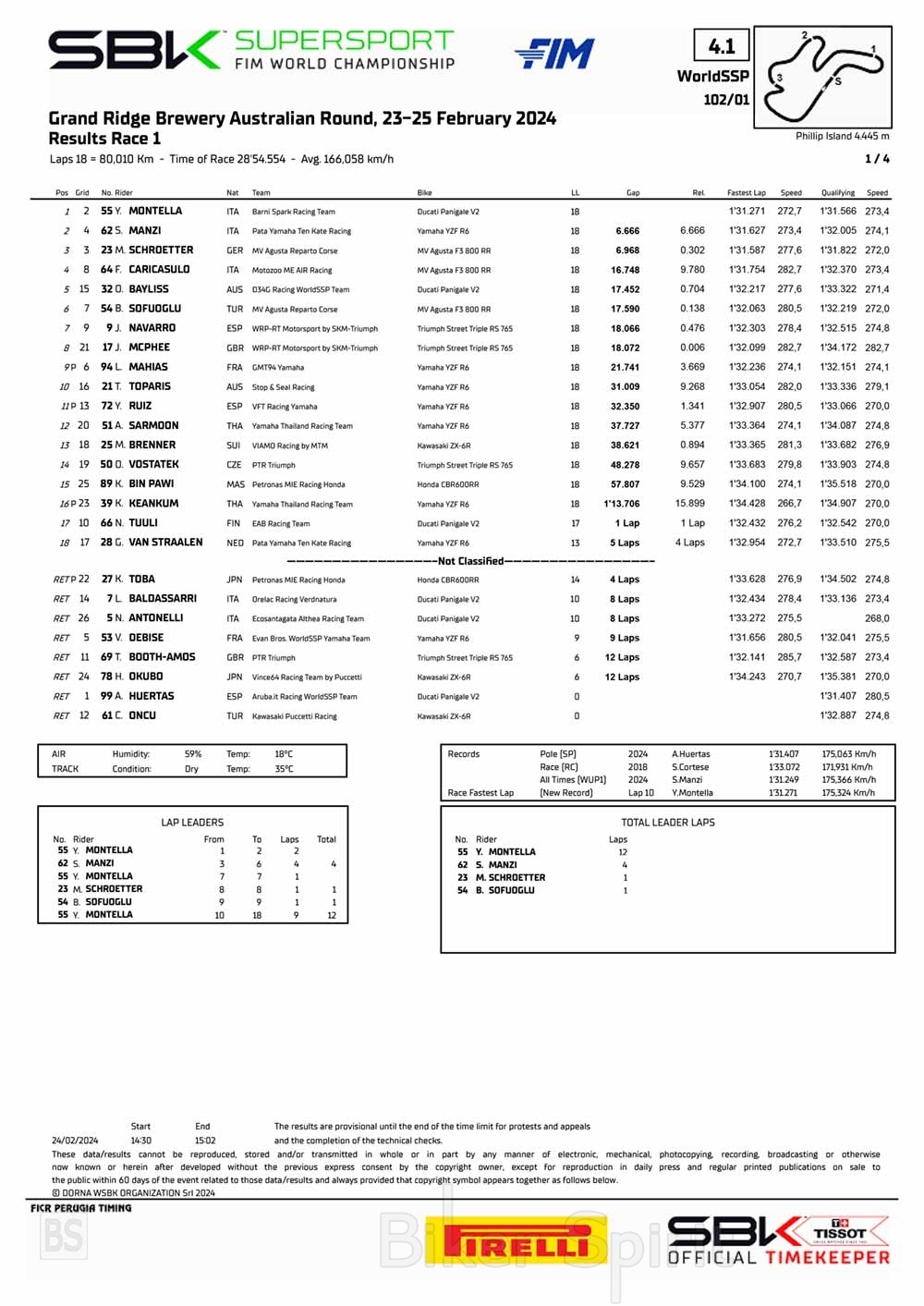 Ο Yari Montella (Barni Spark Racing Team) ξεκίνησε την σεζόν α του Παγκόσμιου Πρωταθλήματος FIM Supersport 2024 με τέλειο στυλ με μια σχεδόν άψογη απόδοση στο Grand Prix Circuit του Phillip Island.