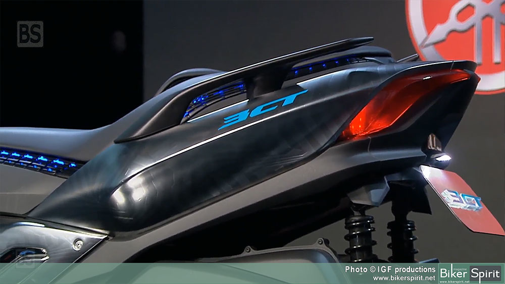Το κομψό πρωτότυπο 3CT είναι γεμάτο με υπέροχες εκπλήξεις και αυθεντικά χαρακτηριστικά σχεδίασης, όπως η σέλα με τρισδιάστατη εκτύπωση – η πρώτη φορά που παρουσιάζεται αυτή η τεχνολογία σε ένα πλαίσιο της Yamaha.