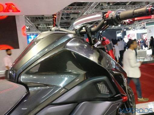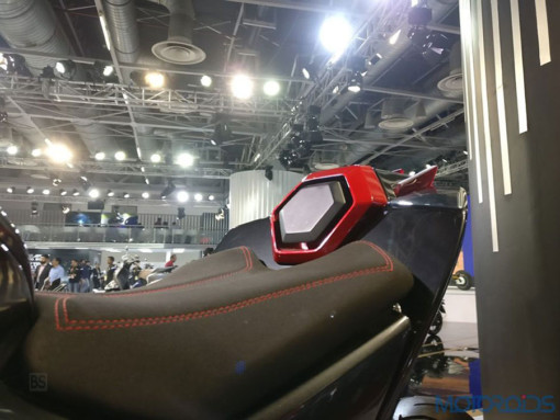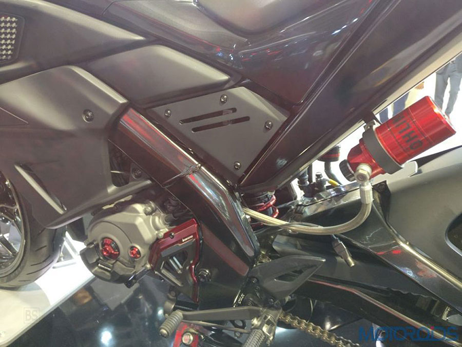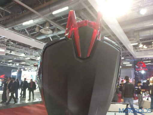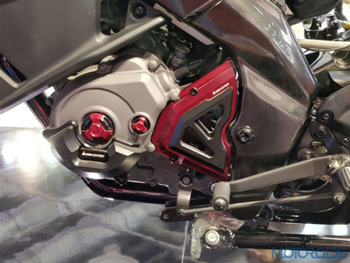 Το κόκκινο έχει χρησιμοποιηθεί στρατηγικά για τις δύο αναρτήσεις, το πίσω μέρος της σέλας και τα εξαρτήματα του κινητήρα.
