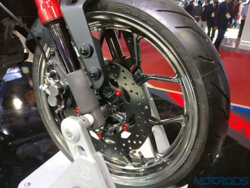 Φοράει ελαστικά Pirelli Diablo Rosso II. Το Hyper Slaz είναι χτισμένο γύρω από το ίδιο πλαίσιο Deltabox με το Yamaha R15 V2.