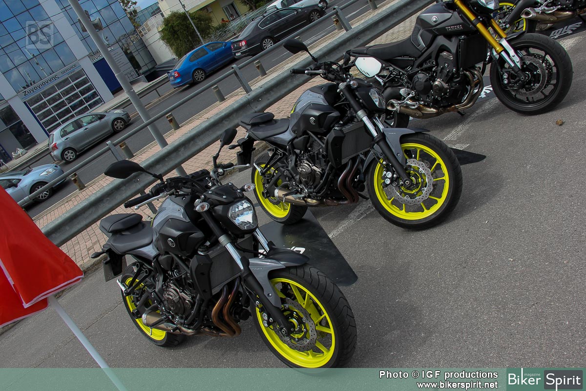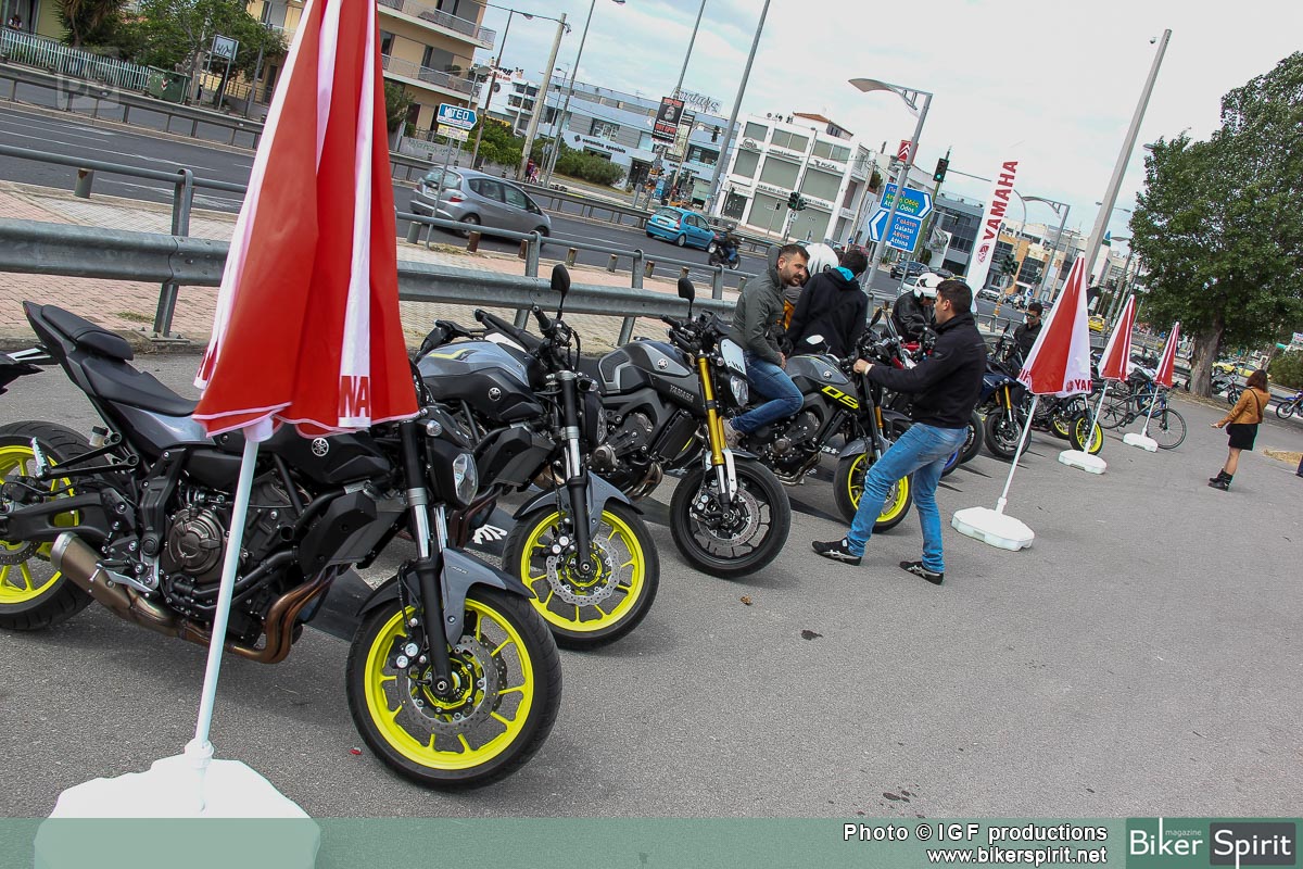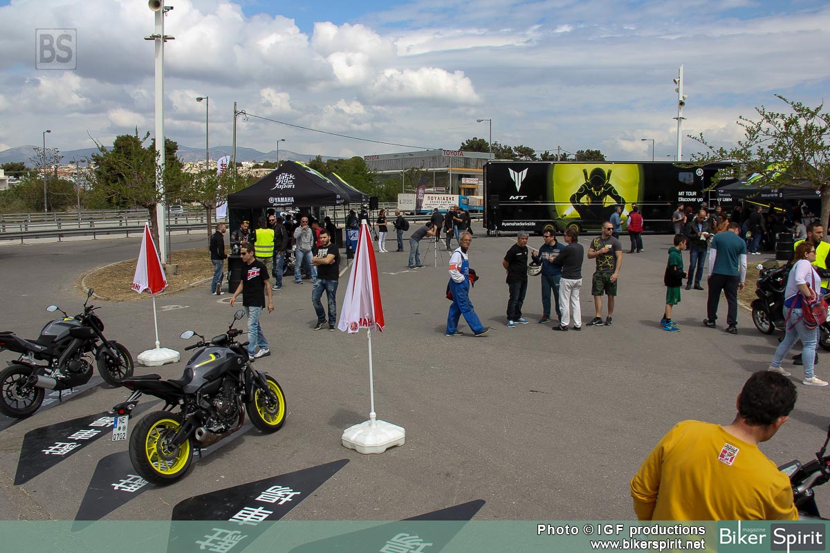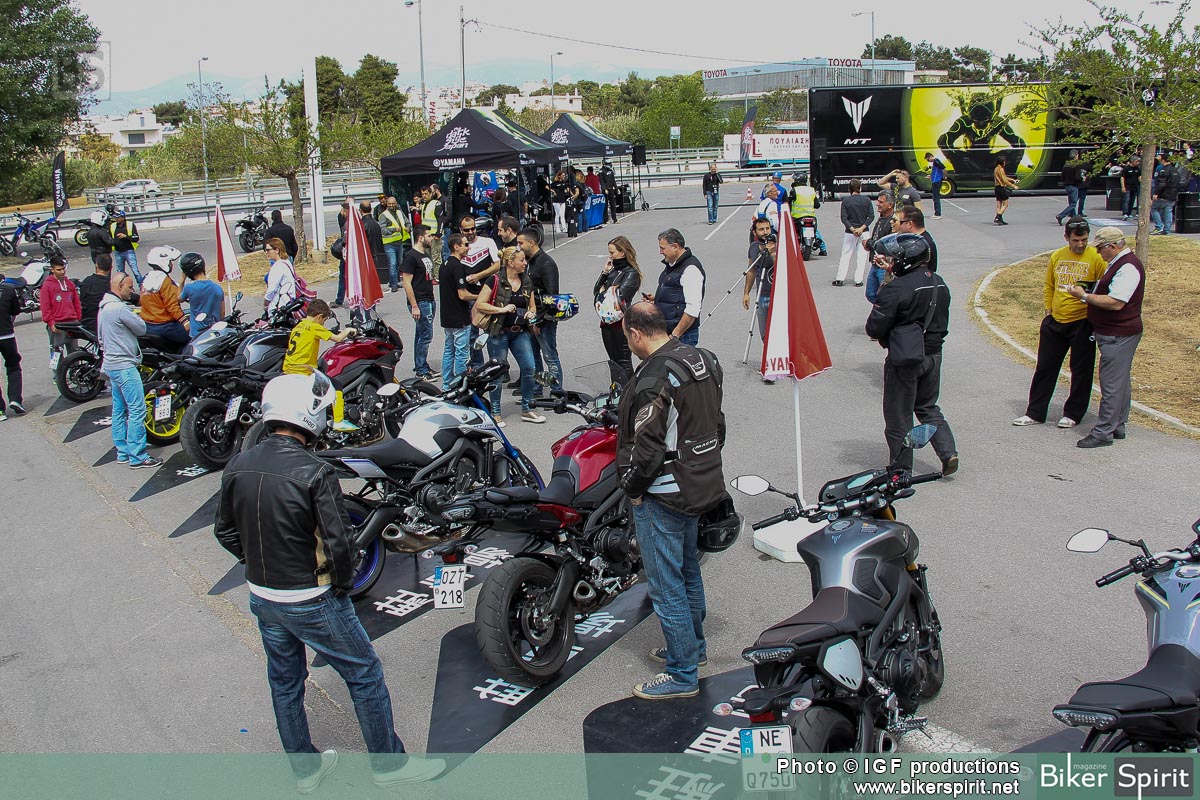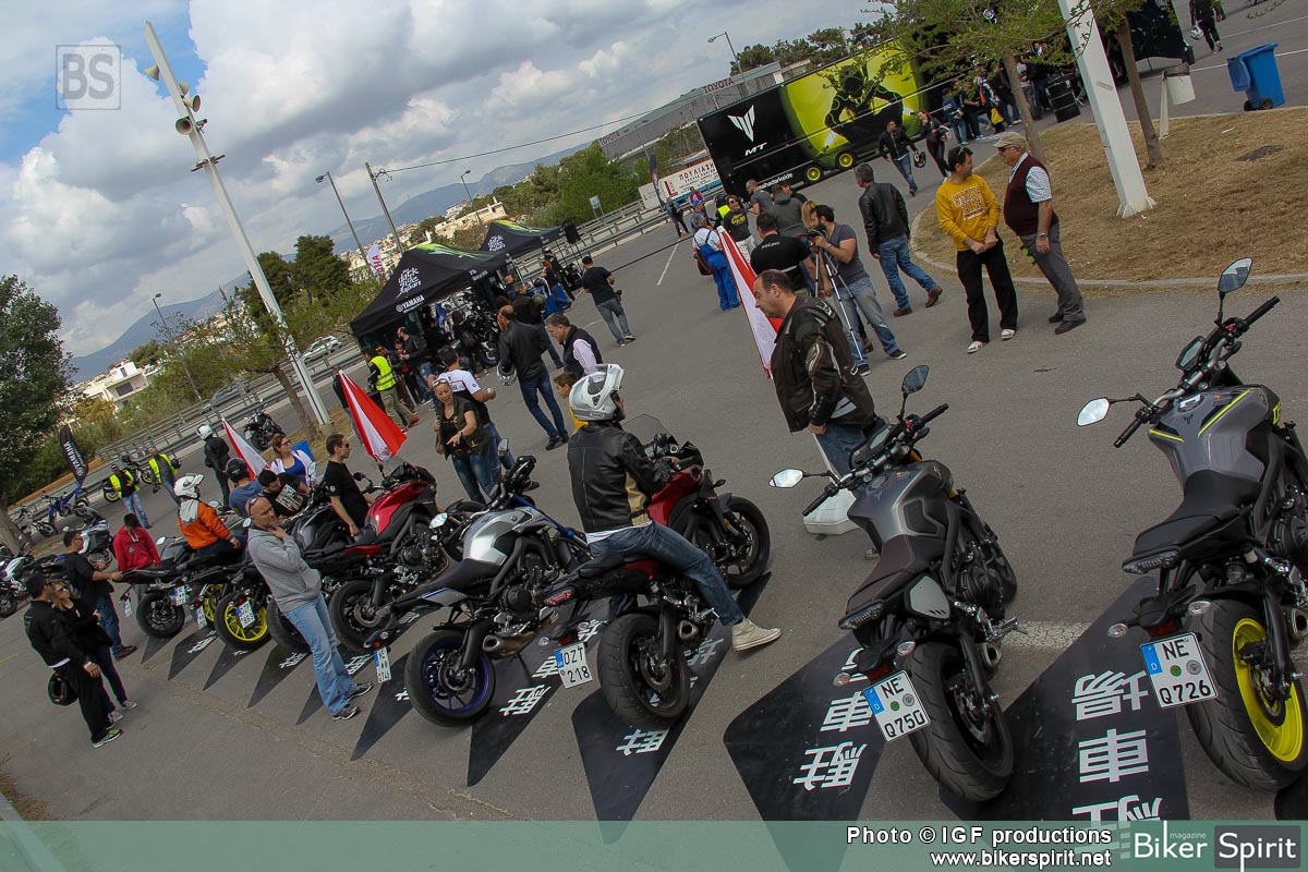 Πλήθος μοτοσυκλετών είχαν στηθεί από τις πρωινές ώρες και τις τρεις μέρες του MT TOUR της Αθήνας, και περίμεναν τους αναβάτες να τις δοκιμάσουν. 6 μοντέλα της εταιρίας από το μικρότερο μέλος MT-125, την δικύλινδρη naked MT-07, την τρικύλινδρη naked MT-09, και τις τρεις παραλλαγές της MT-09 Street rally, MT-09 Sport Tracker, και την εντυπωσιακή ναυαρχίδα MT-09 Tracer που ήδη έχει αρχίσει να κατακλύζει τους Ελληνικούς δρόμους, ήταν εκεί έτοιμα για τις δοκιμές.