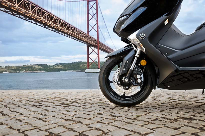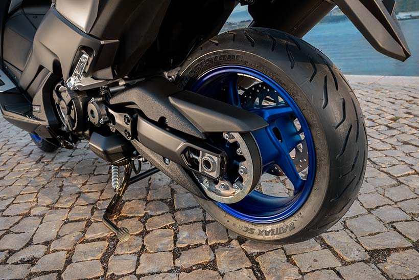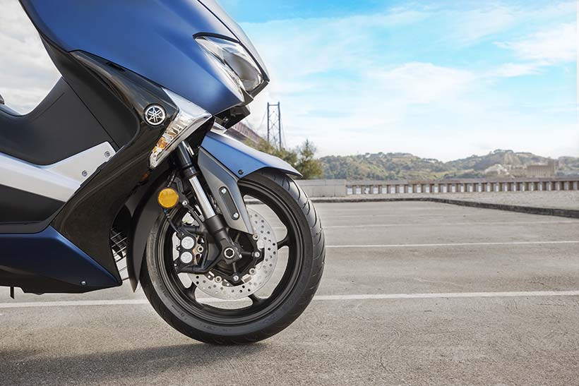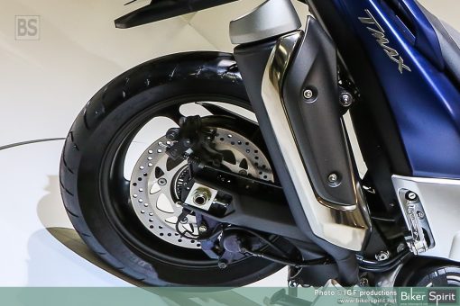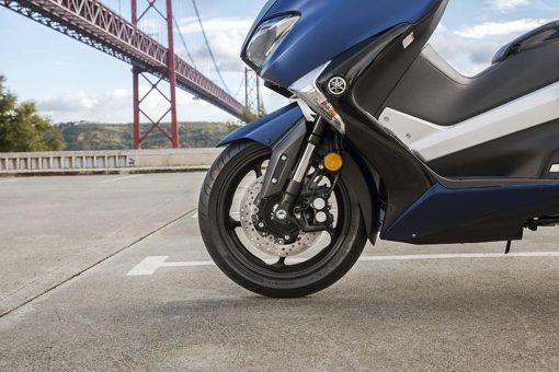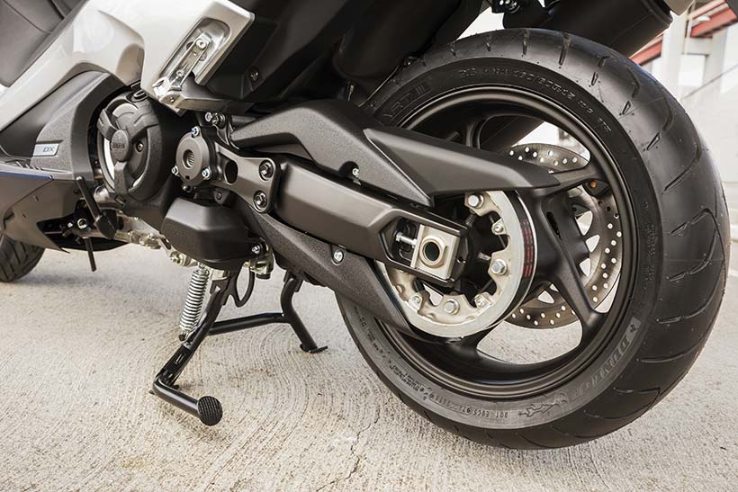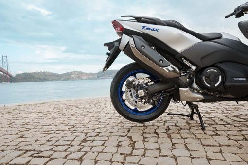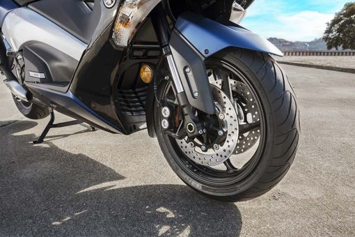 Το 2017 TMAX χρησιμοποιεί ελαστικά ίδιου μεγέθους με το σημερινό μοντέλο, 120/70-15 μπροστά και 160/60-15 πίσω. Επίσης, για την περαιτέρω μείωση του μη αναρτώμενου βάρους, το μέγεθος της πίσω ζάντας έχει μειωθεί σε 4,50″.