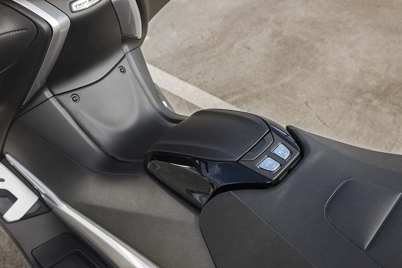 Χάρη στο ολοκαίνουργιο σύστημα χωρίς κλειδί “Smart Key”, οι αναβάτες του νέου TMAX δεν θα χρειαστεί ποτέ ξανά να ψάξουν σε ποια τσέπη έχουν βάλει το κλειδί τους. Εφόσον ο αναβάτης έχει μαζί του το Smart Key, μπορεί να ενεργοποιήσει τον κινητήρα, να ξεκλειδώσει τη σέλα και άλλες θήκες, καθώς και να κλειδώσει ή να απελευθερώσει τον κύριο ορθοστάτη. Πρόκειται για μια μικρή λεπτομέρεια, η οποία, ωστόσο, κάνει την κάθε μέρα λίγο ευκολότερη και προσφέρει ένα αίσθημα ασφάλειας.