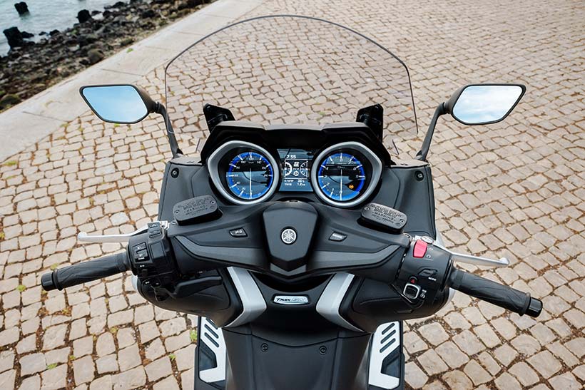 Οι αναβάτες του TMAX θα απολαύσουν έναν από τους πιο κομψούς πίνακες οργάνων που έχουν τοποθετηθεί ποτέ σε scooter, με οθόνη υψηλής ποιότητας που τονίζει τις υψηλές προδιαγραφές του TMAX και προσφέρει μεγαλύτερη αίσθηση βάθους σε σύγκριση με τα συμβατικά σχέδια. Τα όργανα πολλαπλών λειτουργιών νέας σχεδίασης αποτελούνται από ένα αναλογικό ταχύμετρο στην αριστερή πλευρά και ένα αναλογικό στροφόμετρο στη δεξιά, με μπλε κυκλικά περιγράμματα σε μαύρο φόντο.