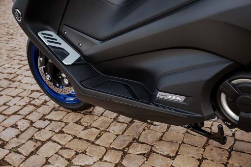 Το νέο TMAX SX διατίθεται στο χρώμα Matt Silver με μπλε τροχούς και στο χρώμα Liquid Darkness, δύο βαθιά και διακριτικά χρωματικά φινιρίσματα τα οποία, σε συνδυασμό με το κομψό έμβλημα SX, τονίζουν τον σπορ χαρακτήρα και την αποκλειστικότητά του.