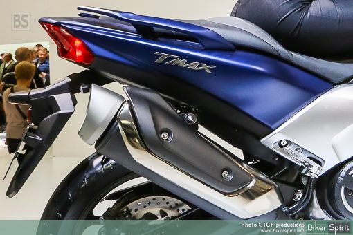 Ο νέος, κοντός και μικρός, κεκλιμένος σιγαστήρας ενισχύει την πιο δυναμική εμφάνιση του μοντέλου 2017, ενώ η ανανεωμένη θέση του καταλύτη και το κουτί φίλτρου αέρα νέας σχεδίασης είναι μόνο ορισμένες από τις βελτιώσεις που εξασφαλίζουν ότι ο κινητήρας του TMAX πληροί τις απαιτήσεις του προτύπου EU4.