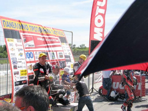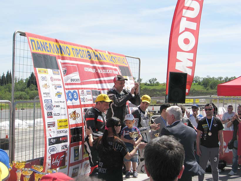 Το πέσιμο της καρό σημαίας του πρώτου αγώνα βρίσκει τον Λάμπρο Τσώκο 2ο και τον Λέανδρο Ντότσικα 3ο, οπότε και οι δύο αναβάτες της ομάδας Yamaha Tsokos Racing είναι στο βάθρο! Ικανοποιημένοι για τα αποτελέσματα του πρώτου αγώνα, με την υπόσχεση στους χορηγούς τους και σε όσους τους βοηθούν με την συμμετοχή τους, να προσπαθήσουν για τα καλύτερα δυνατά αποτελέσματα στους επόμενους αγώνες που θα ακολουθήσουν, οι αναβάτες Λάμπρος Τσώκος και Λέανδρος Ντότσικας, ανανεώνουν το αγωνιστικό ραντεβού τους στις 15 Μαϊου στην πίστα των Σερρών.