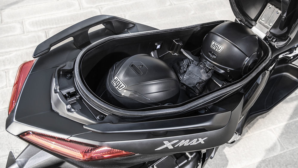 - Μεγάλος χώρος αποθήκευσης κάτω από τη σέλα για 2 κράνη full-face