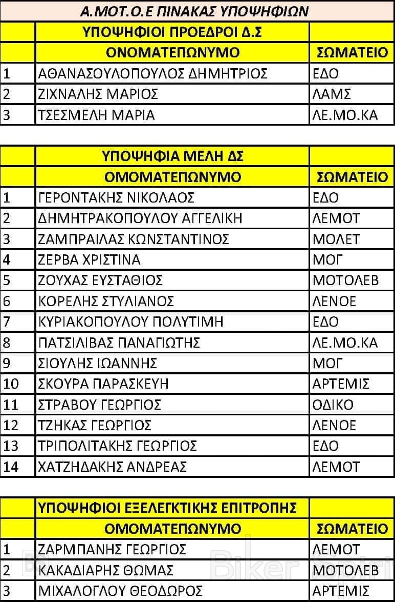 Υποψήφιοι για τις εκλογές της ΑΜΟΤΟΕ που θα γίνουν στις 27 Μαρτίου 2021