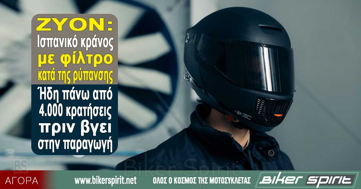 Η ισπανική startup ZYON προκαλεί αίσθηση στον κόσμο της μοτοσυκλέτας με την ανάπτυξη ενός πρωτοποριακού κράνους που ενσωματώνει σύστημα φιλτραρίσματος του αέρα, προστατεύοντας τον αναβάτη από ρύπους και αλλεργιογόνα. Το κράνος έχει ήδη ξεπεράσει τις 4.000 προπαραγγελίες, με την παραγωγή να προγραμματίζεται για τα τέλη του 2025 και την κυκλοφορία του στην αγορά στα μέσα του 2026.